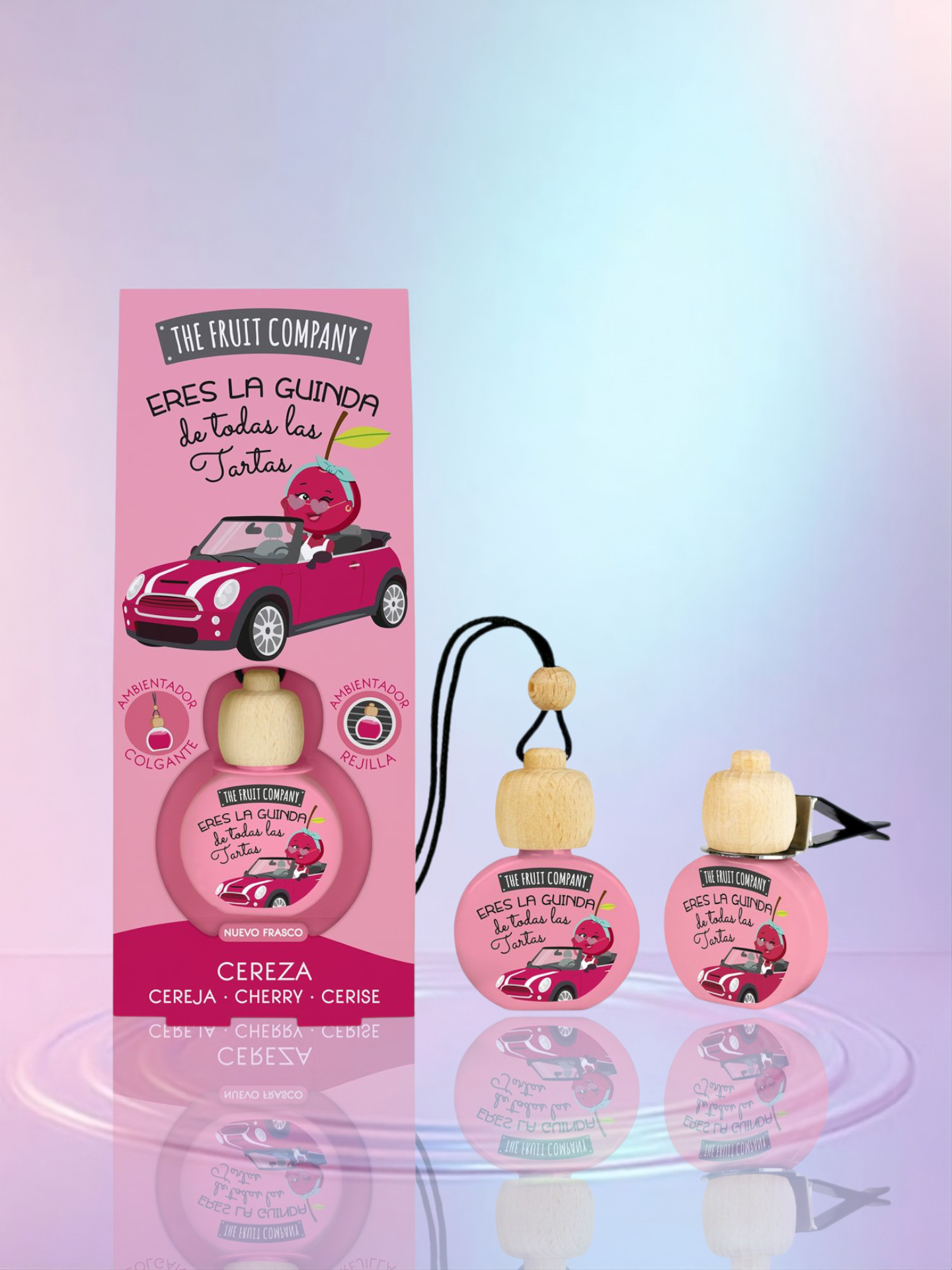 Haz que cada trayecto sea una experiencia dulce y divertida con el Ambientador de Coche Cereza de The Fruit Company. Con un diseño encantador y un aroma afrutado y floral, este ambientador transformará tu vehículo en un lugar acogedor y lleno de personalidad. 🍒✨