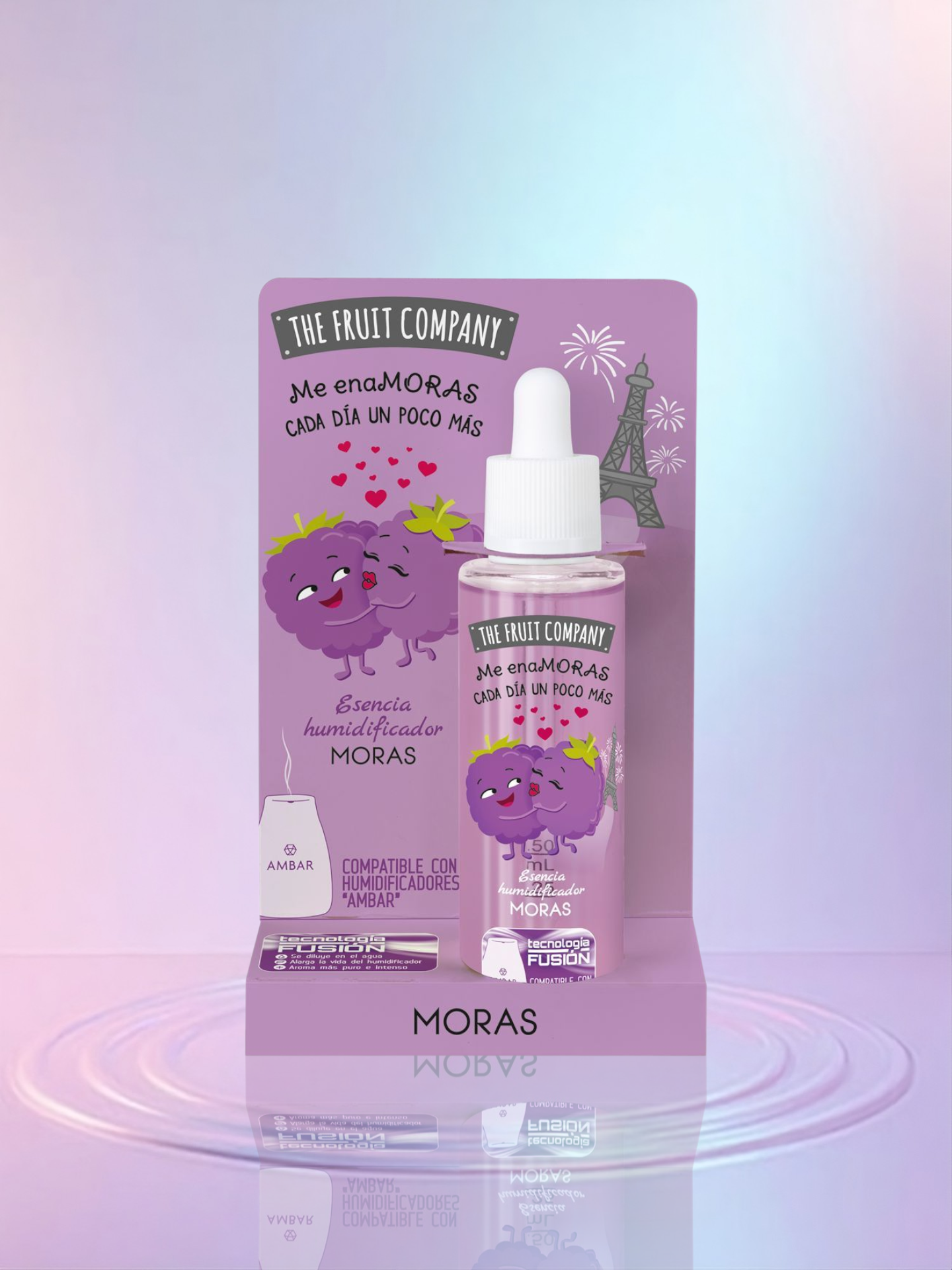 Sumérgete en una atmósfera dulce y afrutada con la Esencia Humidificador Moras 50 ml de The Fruit Company. Esta esencia hidrosoluble de alta concentración, desarrollada con la exclusiva Tecnología Fusión Ambar Perfums, se mezcla perfectamente con el agua, evitando residuos aceitosos y garantizando una difusión limpia y duradera. Su aroma envolvente a moras, con notas de frambuesa, fresa, violetas y un toque de almizcle dulce, crea un ambiente cálido y reconfortante. Ideal para usar en humidificadores, esta esencia no solo perfuma el ambiente, sino que también contribuye a mantener una humedad óptima en el aire, mejorando la respiración y evitando la sequedad ocular y de la piel. Es perfecta para crear un entorno relajante y equilibrado en tu hogar u oficina.
