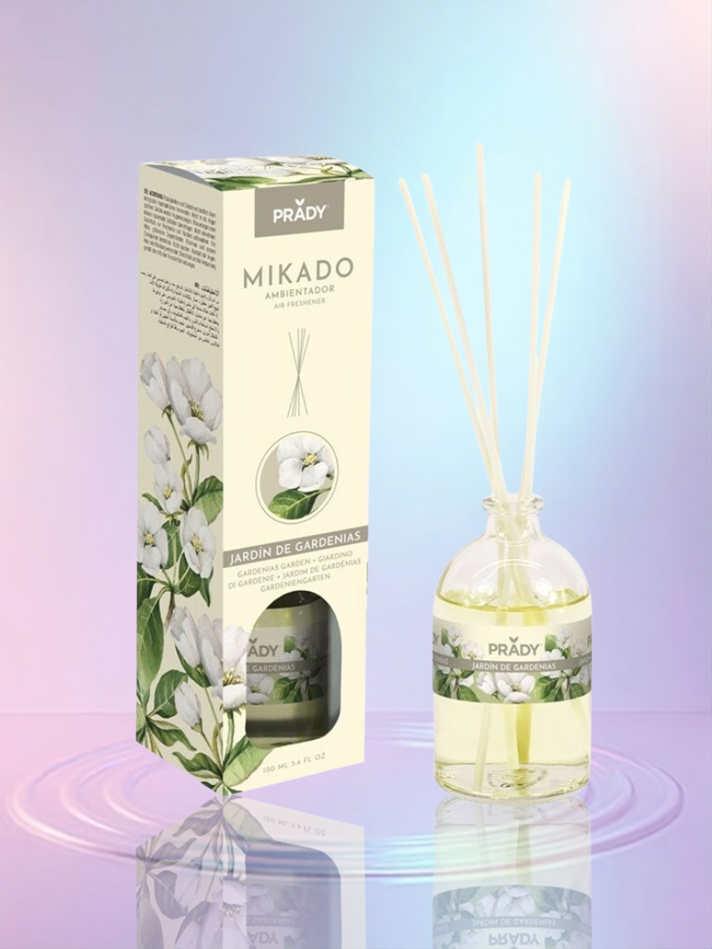 Sumérgete en un jardín lleno de elegancia y frescura con el Mikado Jardín de Gardenias de Prady. Este ambientador combina notas florales delicadas con un toque sutil de coco y naranja, creando una fragancia envolvente que transforma cualquier espacio en un refugio de armonía y estilo. 🌼✨